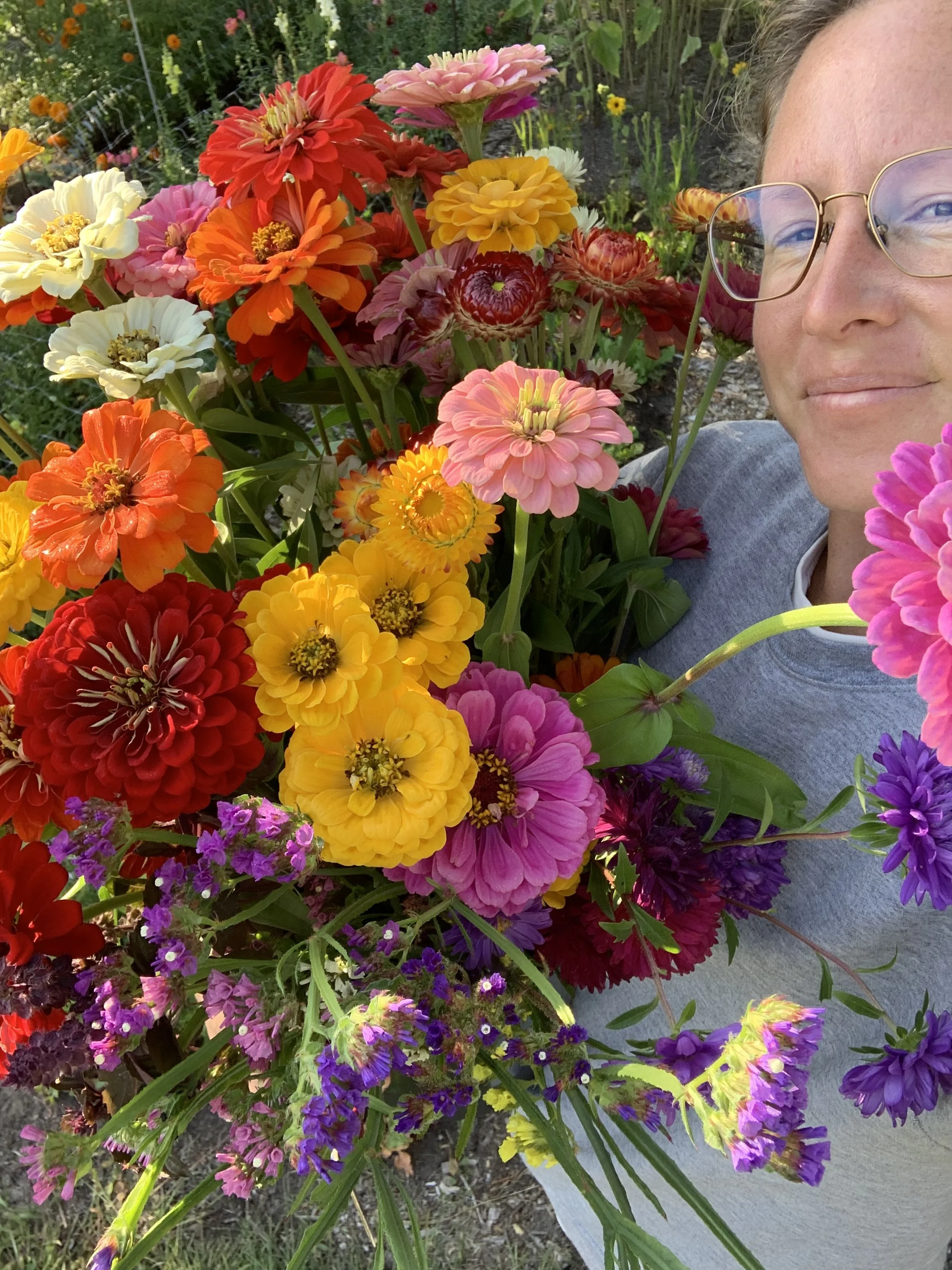 A small space can grow so much. Using only 1500 square feet, I am able to offer hand-picked bouquets and seasonal vegetables.