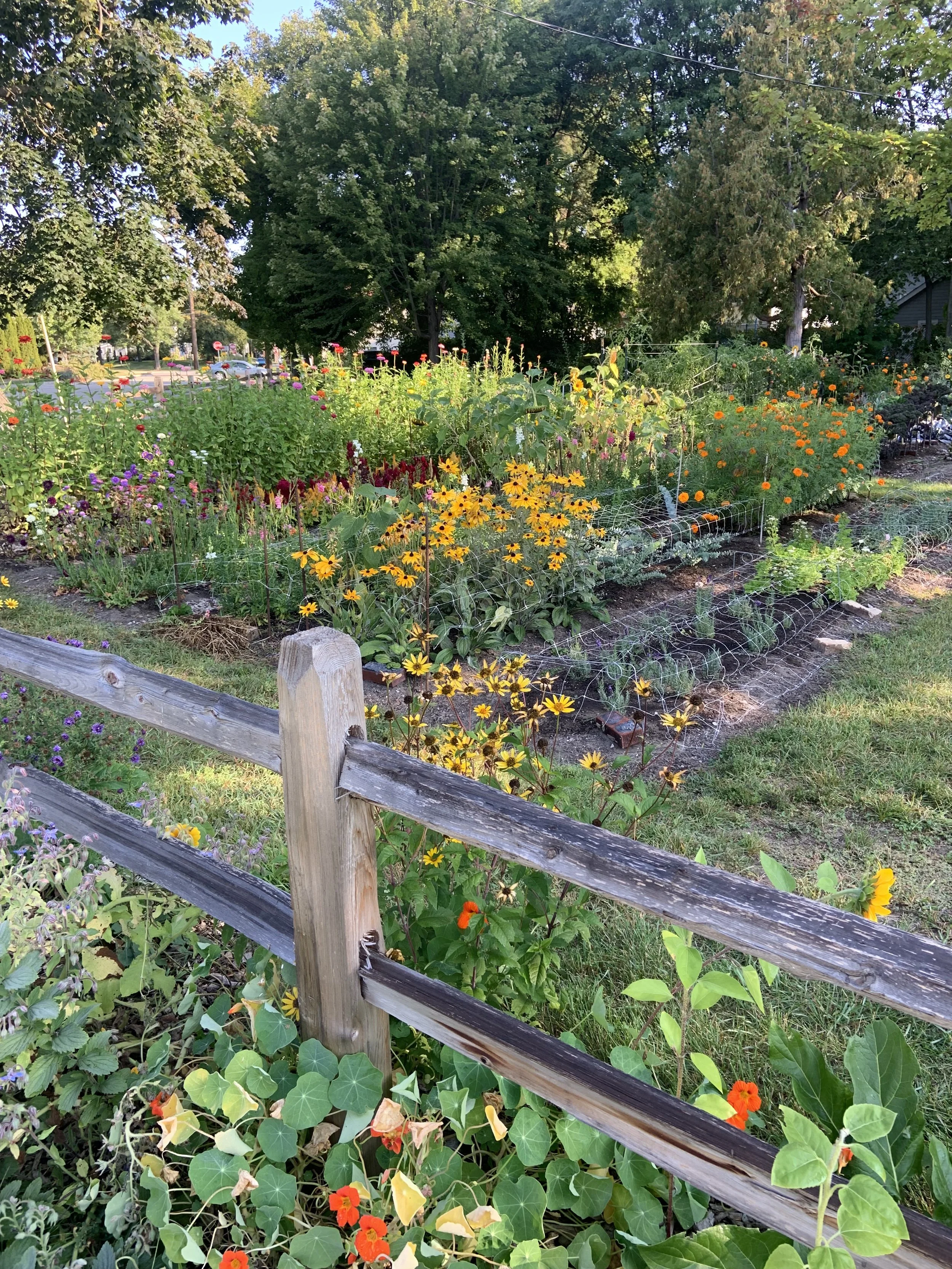 A small scale, intensive garden with a wide variety of seasonal crops available June through September.